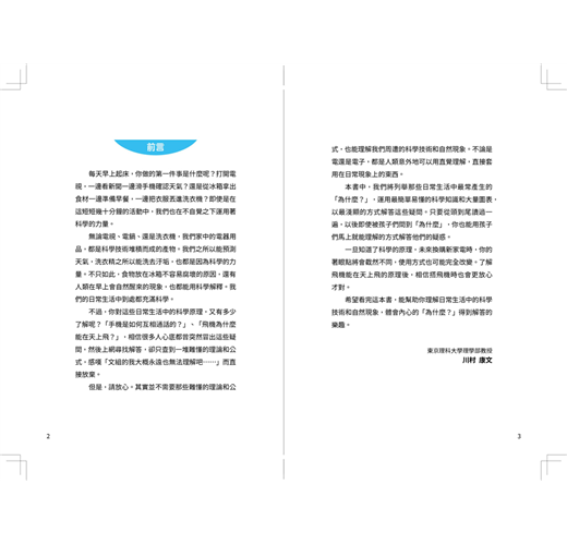 希望看完這本書,能助你理解日常生活中的科學技術和自然現象,體會內心的「為什麼?」得到解答的樂趣。