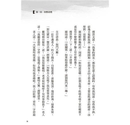傅萍又道:「我爹的朋友,都是生意上認識的。有些我知道,有些我不熟。前幾天他跟我說,會找時間和一位朋友去山上看木材,主要是找適合的建材。沒想到,沒想到……」