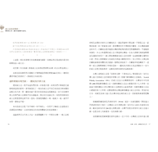 說真的,從來沒有一種酒類能像威士忌一樣,讓喝酒這檔事成為一種流行時尚及個人化品味的象徵,而且更讓人驚艷的事,它還能跳脫原來的角色與功能,成為熱門投資商品,如果你想知道為什麼威士忌能喝、能玩、又能賺錢,現在請端起酒杯,繫好安全帶,和我一起進入這迷人的威士忌投資世界吧。