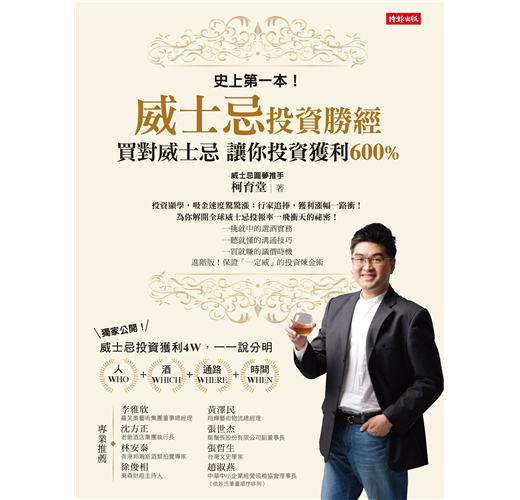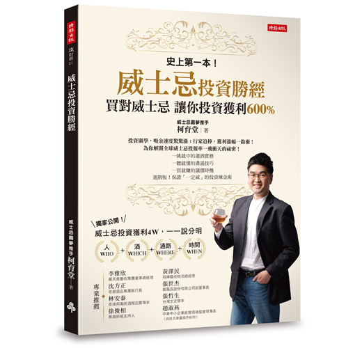 坊間威士忌製程研究及品飲推薦的書不在少數,然而深度談論威士忌投資的書,付之闕如,欣聞育堂吾友願意將其多年威士忌投資心得與案例,書寫成書,實在是威士忌迷之福,更是市場之創舉,謹此除了祝福新書大賣外,亦期待未來和所有投資朋友共創三贏。