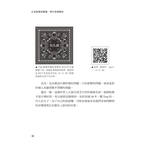 在這本書中,雖然並沒有針對細節及樂風做出更多的書寫及評判,但以詼諧的寫法提供給大家一些關於流行音樂的背景和補充,再搭配QR Code,邊讀邊聽音樂,讓人彷彿走過那段歷史一樣,聽音樂很簡單,但聽懂並理解音樂的背景故事,是需要時間的累積,現在就拿起這本書,和作者一起重遊過去吧!
