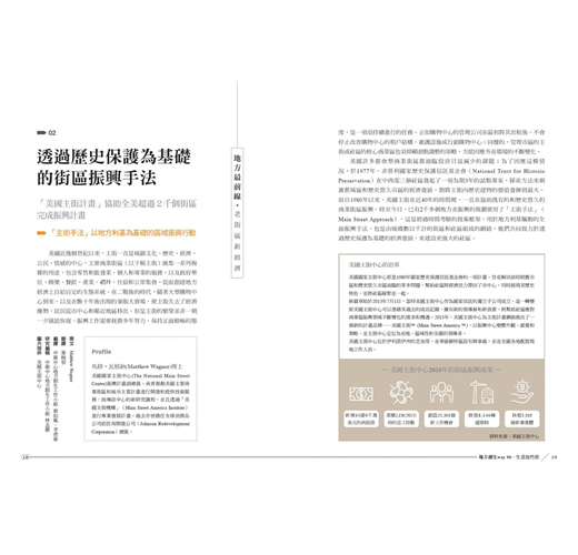 這一期封面故事「老街區新經濟」,編輯團隊遠赴芝加哥拜訪了美國主街中心探究他們這40年來,持續在全美協助超過2千個街區轉型活化的成功關鍵;同時也深入台灣城鄉內的大小商業街區、老市場,發掘這些一度風華褪去的老街區,如何吸引新業態群聚造街、用文化翻轉在地產業,進而成為讓人一再到訪的理由。