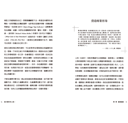 「一本極具洞見與實用性的業界指南,所有畢業生都該讀。」──全美大學生家長互助會會長詹姆士‧鮑伊(James A. Boyle)