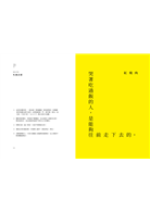 當你可以正視自己身體裡與生俱來的笨拙、平凡和孤獨,你就能夠徹底諒解過去的自己,然後積極樂觀地去迎接未來,就能想方設法地過好每一個當下。這種活法雖不聰明,但誠懇;雖會犯錯,但坦然。