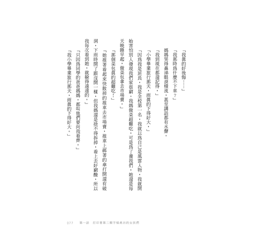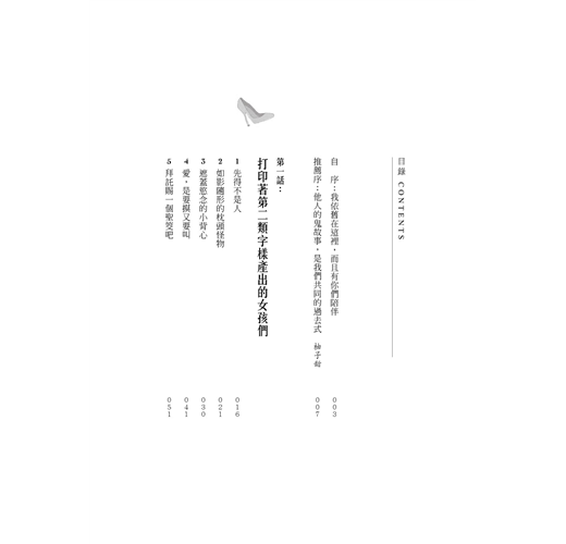 身為女孩,在臺灣,我們幾乎都是這麼長大的。有著類似的故事,也有著同樣的徬徨與無奈。作者在媒體圈工作數年,採訪過無數人,才發現最荒誕離奇的是你我身邊的故事,而那各種無人願意修復的異常,卻是我們日復一日的日常,漸漸習以為常。