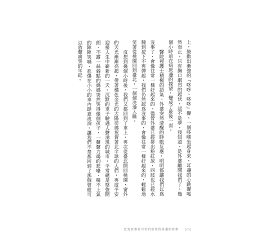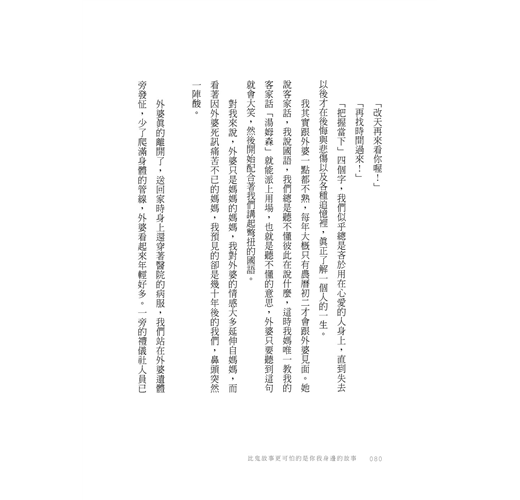 月經來潮要隱諱地說「那個來」才有教養、制服裡除了內衣還要加一層小背心避免暴露、校園熱門的霸凌人選比天氣莫測高深,唯恐哪天醒來換成了自己、過年家族聚會總以碎唸八卦作為關愛的表達、職場裡不管多拚命永遠有前輩老鳥說唉這你不懂、長輩治喪期間往往是數十年愛恨情仇的總結算……而我們還是不輕易對身邊人說愛,直到生命盡頭。