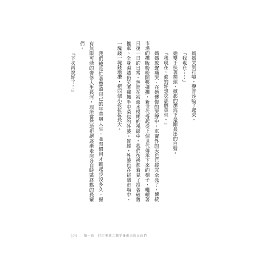 職場中似是而非的價值觀、求職時不可理喻的潛規則、學生時期老師的無上權威、家族鬧劇裡到底什麼才是「孝順」的荒謬⋯⋯書中我印象最深刻的是,小時候的作者在大人的眼皮底下過活,逢年過節要爺爺奶奶叔叔伯伯輪番喊一聲,這也就罷,但還是小孩子的她,如果不小心漏了哪個不在場的誰,長輩會直匆匆地跑出來,指著她鼻子質問:「妳剛剛為什麼沒有喊我?」等她慌張地補喊長輩稱呼,才換來對方親暱地揉揉捏捏:「好乖好乖。」