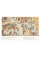 芭芭拉的畫風古典細膩,細節繁複考究,飄散著一股迷人的舊年代氣息,彷彿打開了時光之們,令人看得著迷。像是市集那一幕,每個攤販販售的物品,每一件都擁有極細膩的細節,每個人物都正在進行著各自的事,閒聊的婦人、玩耍的孩童、看書的先生、挑蔬果的客人,就連人物身上的服飾、表情都畫得非常精細,欣賞之際,耳邊彷彿已經響起市集的喧鬧聲。