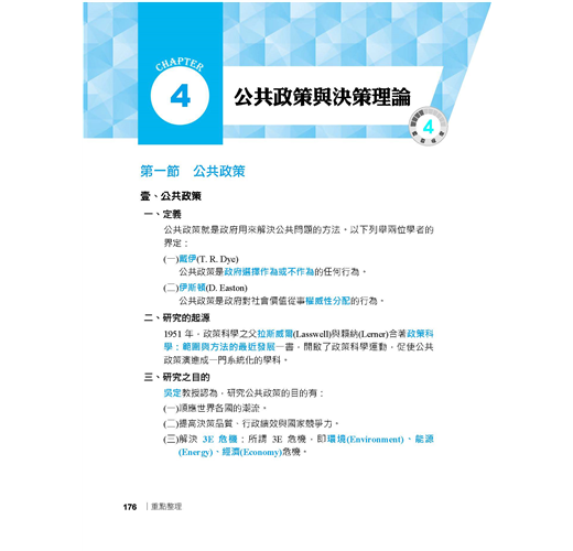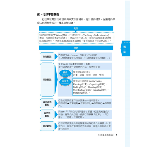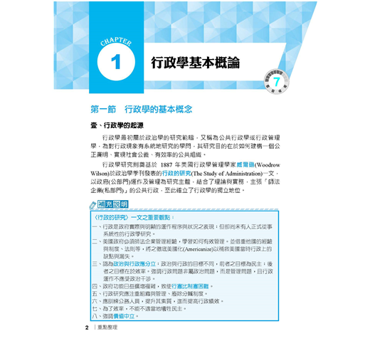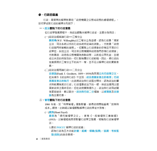 【適用對象】這本《行政學大意完全攻略》適用於報考「初等考試、地方特考五等考試、身心障礙人員五等考試、原住民族五等考試」一般行政類科,及國安局特考五等行政組的考生。【考試資訊及報考利多】◎初五等考試:公務人員初等考試(初考)、公務人員高等考試三級考試暨普通考試(高普考)及特種考試地方政府公務人員考試(地方特考)並列為我國公務人員考試中三大最具代表性的考試。其中初等考試不限學歷,凡是年滿18歲的中華民國國民皆可報考。該考試每年固定舉辦,提供不同領域人才的公職就業機會。考生可依自身學習背景及興趣來選擇自己喜歡的類科,應考科目大多都是學校的必修科目,讓各類科考生在報考時就擁有一定程度的競爭優勢。初等考試只考四科,且全為選擇題型,一經錄取起薪可達三萬元,並享有完整公務員福利,絕對是有心在公職領域打拼的最佳入門選擇!相較於初考由中央政府開缺,全國統一選填志願分發;地方特考則是由各地方政府開缺,採分區報名、分區錄取的方式,工作地點離家比較不會過遠。加上地方特考與初考考試時間差不到1個月,因此以初考為目標的考生也可以加報地方特考五等,一次準備,二次上榜機會。※應試正確資訊請以考試簡章為準※【一般行政類科介紹】一般行政類科工作範圍廣泛,從中央到地方各級單位都有人力需求,每年缺額量多穩定。其工作簡單易上手,且考試科目無特殊專業背景要求,懷抱公務員夢想、喜歡行政庶務的考生,可以優先選擇此類科報名。一般行政的工作內容,由於是針對普通行政事務而開設,因此工作涵蓋很廣,多以例行性事務為主,像是文書處理、事務管理、物料採購、出納、打字等,不會牽涉到太多的專業技能。也因此,考上一般行政類科公務員,將來遇缺所能申請分發的單位,廣度也居各類科之冠,最有機會調回住家附近,因此是多數公職考生的第一選擇!※應試正確資訊請以考試簡章為準※【本書特色】行政學又稱公共行政,研究的是如何經營一個政府的學問,也是和許多學科之間不斷融合演化的新興社會科學。行政學的範疇包括「公共政策」、「公共管理」、「人事行政」、「府際關係」、「政治學」等,甚至連「心理學」和「經濟學」都包含在內,由於其範圍既深且廣,常造成許多考生在準備上抓不到方向。考生的心聲我們都聽到了,三民輔考專業團隊特別為廣大的考生編著了這本「行政學寶典」,本書特色如下:一、繁雜學說內容深入淺出本書根據考選部公布之命題大綱為考生整理了七大主題,包括:(一)行政學基本概論、(二)組織理論、(三)人事與財務、(四)公共政策與決策理論、(五)行政環境、(六)行政運作與管理技術、(七)行政倫理,且由於行政學相關學說較為繁雜,本書為提高考生備考效率,重點整理部份透過條列及圖表的統整,以深入淺出的方式幫助考生輕鬆吸收!二、模擬練習驗收學習成果本書各章後皆附「模擬練習」,精心收錄大量和該章內容相關的試題,讓考生每研讀完一章,便可立即進行實戰演練,以最有效率的方式驗收每個章節的學習成果!三、歷屆試題掌握命題重點本書收錄102年至109年初等考試及國營事業行政學大意(概要)考科試題共17份,並由三民輔考名師群提供題題詳解的詳細解析,免除還要去找解析訊息的麻煩,將寶貴時間留下來讀更多內容,比別人多一分上榜實力。【考題分析及準備技巧】綜觀近年來行政學大意平均出題率,最常考的章節為「組織理論」,長久以來都是出題率最高的一章,重要常考主題包括「組織結構」、「非正式組織」、「行政組織」等。第二常考之章節為「人事與財務」,重要常考主題包括「公務員人事制度」及「政府財務與預算」等。常考章節第三名為「公共政策與決策理論」,其為近年來行政學大意考試的一大重點,重要常考主題包括「公共政策的類型」、「政策方案決策途徑」及「政策行銷」等。在行政學大意的準備技巧方面,建議考生們養成習慣「看」考題(不是「做」考題,做考題應該是對內容有相當把握之後再來練習),所謂「看考題」是指,在剛開始準備的時候,應先瞭解各章節主題的出題比例,其次要注意題目大多怎麼「問」(也就是瞭解各種題型,例如是記憶題型或觀念題型等),當題目「看」多了,就比較清楚接下來書要怎麼讀、哪裡才是重點所在了。【考生上榜心得1】:初等考試一般行政上榜生:莊蕙瑀.國文:85.4分.公民與英文:84分.法學大意:80分.行政學大意:80分我原本考上了106年的一般行政警察,但年底被檢查出罹患鼻咽癌,所以放棄了受訓資格,經過治療後,我認為自己擅長考試,於是藉著休養,一邊念書,一邊調養身體,108年參加初等考試,替自己的未來找個出路。三民課程諮詢最專業,雙效課程最有效當初在考國營事業與公職兩者間選擇,但是經過三民老師的分析後,決定考公職,很感謝老師的詳細解說,除此之外,老師也會適時地給予幫助,另外,因三民有雙效課程可以選擇,上面授課前,我會先利用雲端的課程打基礎,上課時,較能抓到重點,也能清楚知道自己哪方面是不理解的。要有上榜的決心,才能考取穩定的公職當初會準備考試,有一部分原因是因為公職的工作是比較穩定,至少不要再讓家人擔心我的工作問題,然而在準備考試時,也曾經想要放棄,但我會一直告訴自己,如果我考上了,家人就可以少一些負擔,而我也有個