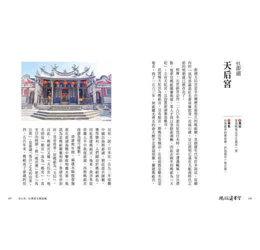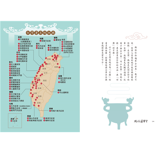 2.介紹全台40餘間重要媽祖廟,可用作巡香、觀光地圖。