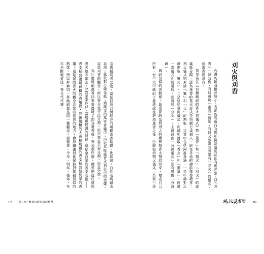而紮根台灣的媽祖信仰,對許多人來說,在看熱鬧之餘,更有著不知其所以然的「門道」。從信仰圈的組織,到祭典的儀式、陣頭、民俗文化等,相關語詞多以閩南語發音為主,致使同一事物出現不同用字、不同說法,或是同一語詞在不同地區代表著不同的意義,若再加上各地習俗的差異,真的教人眼花撩亂。以學術觀點對媽祖信仰的相關名詞,做簡單扼要的解釋,將有助讀者理解台灣媽祖文化及其內涵。