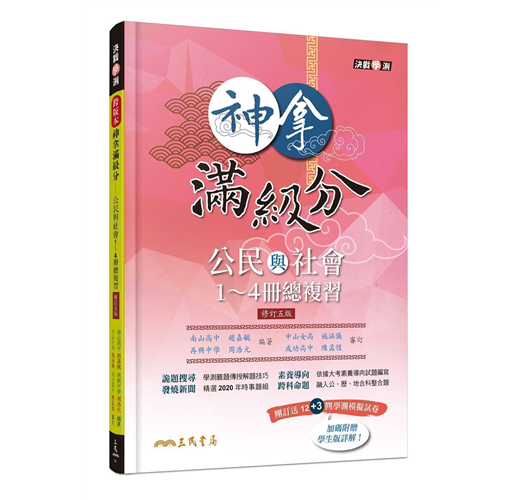 掌握2020年重要時事「發燒新聞臺」單元解密大考難題「詭題大搜尋」單元圖解重要概念 圖像記憶最輕鬆素養試題編寫 醞釀大考解題手感融入跨科命題 融入公民、歷史、地理合科整合題題題有詳解 隨書附贈解析本
