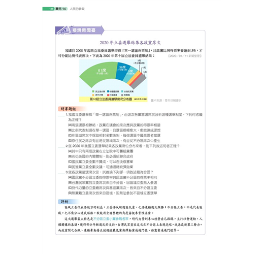專門針對學測編寫大量收錄2020年及2019年的新聞時事精美的重點圖表統整融入公民、歷史、地理跨科素養命題精準掌握大考的應答技巧與考題趨勢