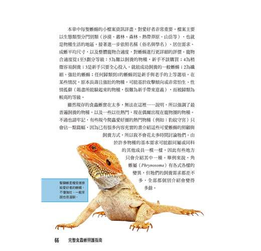 2. 飼育全面攻略,詳細介紹食蟲蜥的飼養環境、餵食與健康照護。