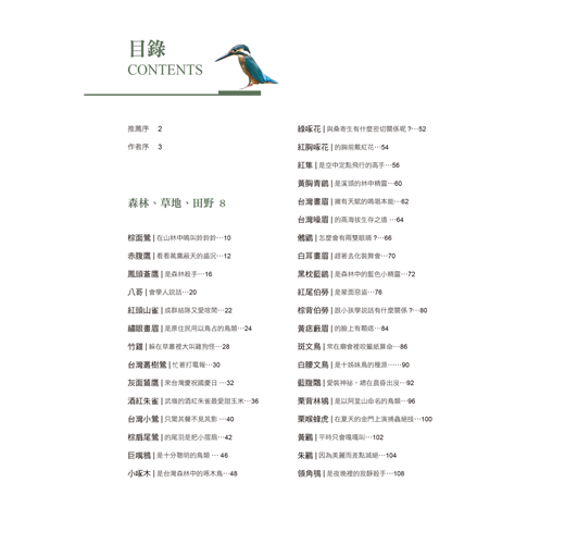 2.內容有別於一般書籍的形態特徵制式介紹,將以野鳥有趣的生態習性作切入。