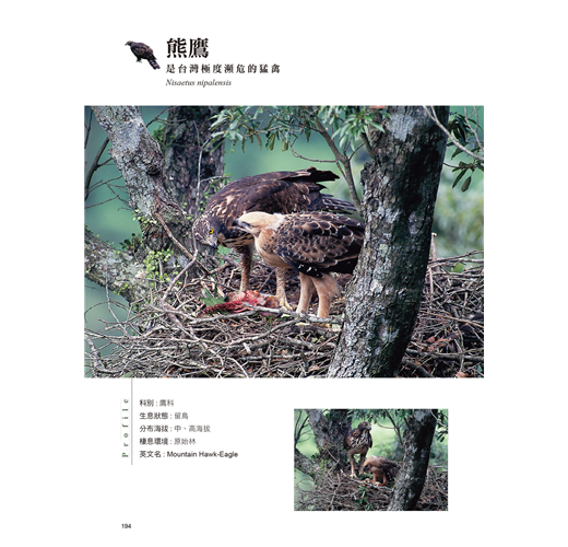 您知道杜鵑科鳥類會將自己的蛋產在其他鳥種巢內,由其代孵、代育嗎?熊鷹築巢於高大樹木的上層,以樹枝築成的巢竟可容納一個成年人站立。