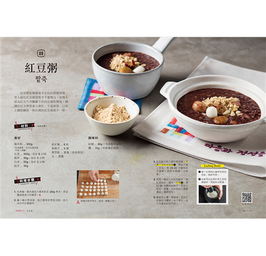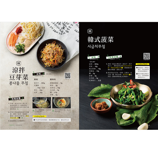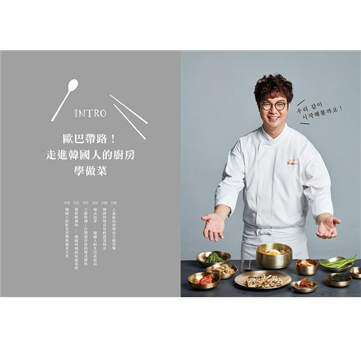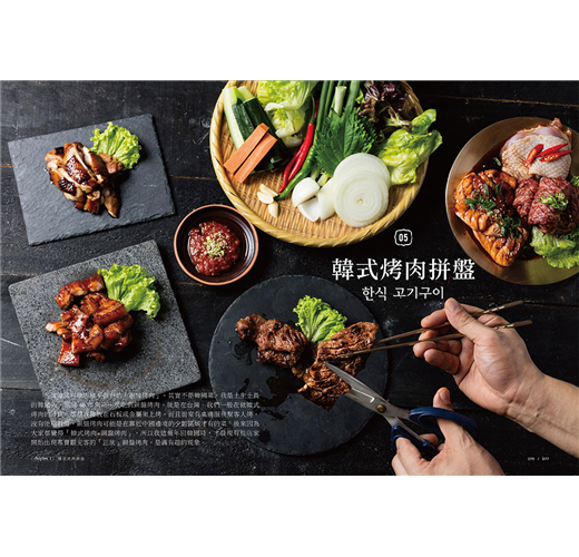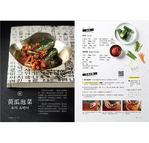 韓國餐桌,總是充滿著鹹香酸辣多重層次,從器皿擺設到食材烹調,從視覺衝擊到味蕾饗宴,即便看似色澤雷同的一碟泡菜,箇中滋味卻是百轉千迴。韓國料理,可以是充滿宮廷禮節的御膳料理,可以是融匯大地恩惠的養生慢食,可以是狂歡作樂的派對美食,也有著百吃不厭的國民小吃。無論是哪一種,在正宗韓國輸入歐巴主廚孫榮 Kai 的這本書籍裡都能看到,甚至打開影片一起動手作,書中不僅有文字、圖片還有影片,相當豐富的內容,光是看試讀就好想動作跟著做呢。用美味回憶旅行的美好,用料理體現文化的情感,今天想來點韓式煎餅還是安東燉雞呢?