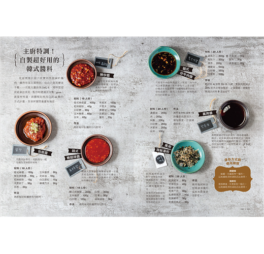② 公開包飯醬、洋釀醬、烤肉醬等調配方法,傳授廠商店家不透露的美味韓醬秘方。