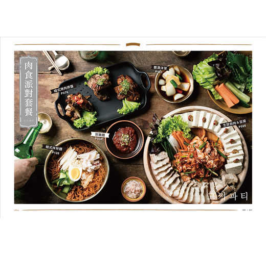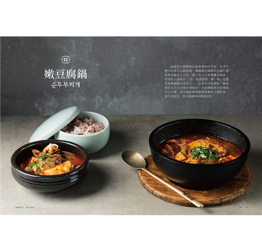 其中有一篇很重要的內容,就是韓國的小菜文化。「반찬」,也就是與飯一起配食的小菜,是韓國飲食文化中不可少的部分,所以我在書中也花了很多篇幅介紹給大家。除此之外,也有韓國很受歡迎的粥品、湯品,並在一開始的時候,用具有主題性的韓國套餐方式陳列,讓大家更快翻閱到自己想要學習的料理。