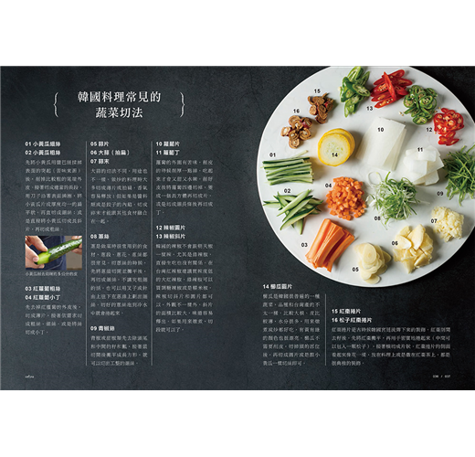 ① 從切絲、切片、捲紅棗等基礎刀法開始教起,一次學會韓國料理最常見的做菜技巧。