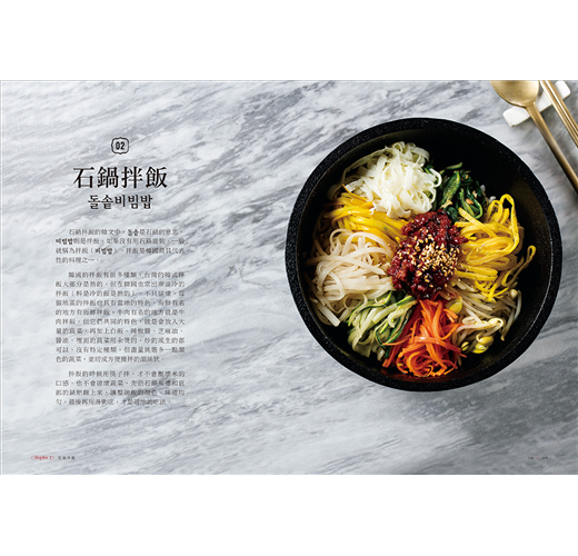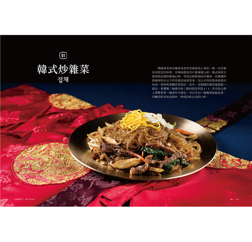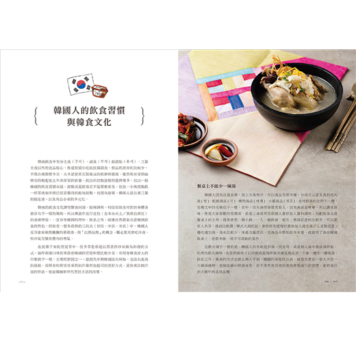 我希望這本書對於初次嘗試韓菜的人來說,也能夠跟著書上的步驟,做出具有道地韓國風味的料理。所以在挑選菜色時,特意不選擇難度很高的韓國糕點、宮廷料理,而是將一些地方知名的美食,像是全州有名的拌飯,安東地區有名的安東燉雞,以及春川辣雞等等……收錄於這本書中,裡面也包含了很多韓國家庭喜歡的家常菜,每一道都是可以在家裡做得出來的菜色。