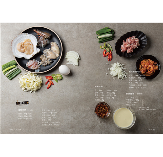同時,我發現台灣人時常去首爾、釜山旅行,是去韓國旅遊的首選城市,常常聽到大家在懷念旅行時曾經嚐到的美味,所以像是明洞的街頭小吃雞蛋糕,還有釜山豬骨湯,我都有排入此這本書內,讓大家可以做給自己和親朋好友嚐嚐。同時在這本書中,我也想向大家介紹韓國的飲食文化,除了講解醬料的不同,也會說明菜色的搭配方式。