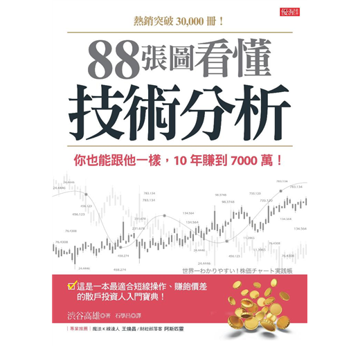 渋谷高雄根據長年買賣股票的經驗,提供「技術分析5大關鍵詞」與「88個練習題」,讓你不需要死記艱堅澀的術語,只要畫出線圖,就能看懂大盤與個股的漲跌趨勢,掌握7成的勝率!