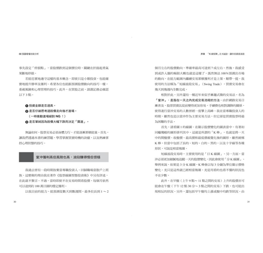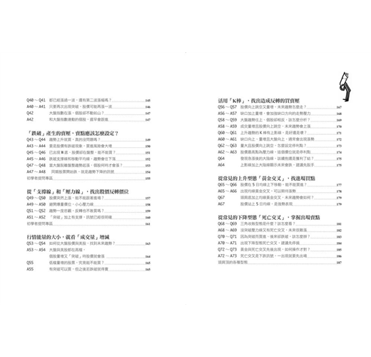 另外,依K線型態定多空趨勢,需以三日或五日K線組合型態作判讀,本人常言一日定轉折、三日定多空、五日定趨勢,作者在書中不僅告訴讀者K線結構、一日K線及不同型態的K線等,出現在關鍵轉折處時如何判斷多空轉折,也藉由趨勢線及移動平均線做為補助工具,在多重判斷漲跌趨勢的方法下,將更能精準提高勝率。