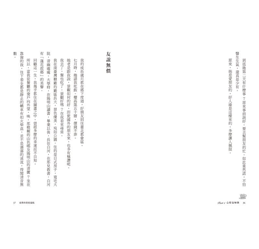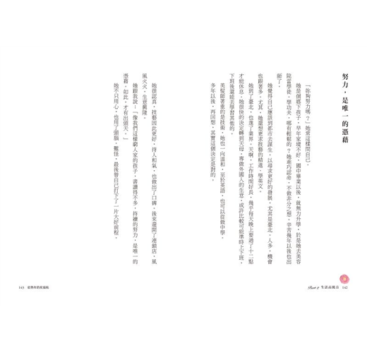 她的性格之美也處處彰顯在字裡行間,讀其文,不免愛其人。