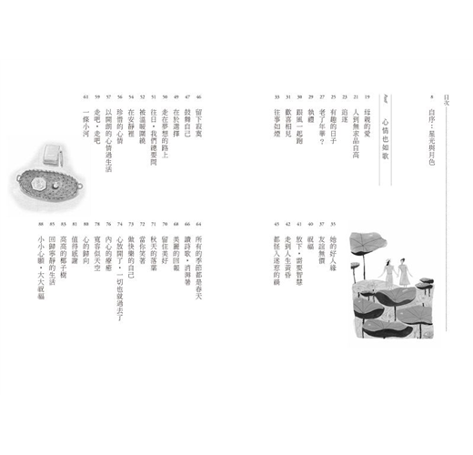 琹涵將熟年的生命智慧,化作一百二十幾篇清新小品,讓人聆聽生活高低起伏的音符,品嘗歲月酸甜的滋味,恍然領悟:歡樂有時,哀傷有時,繁華有時,衰敗有時,活在當下,才是至理。走到了黃昏的時刻,能捨就捨,能放下就放下,活得像天邊一朵雲,隨風四處遨遊,再無罣礙在心頭。透過琹涵優美的字句感受溫暖的祝福,不僅豐厚了我們的內心,更能篤定的面對生老病死,找到屬於自己的自在與豁達。
