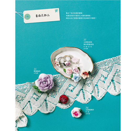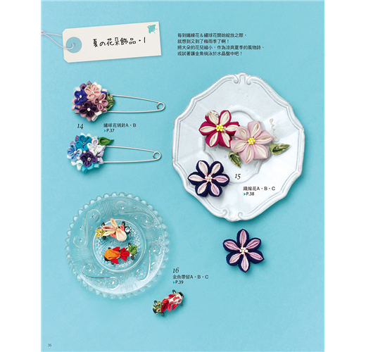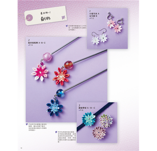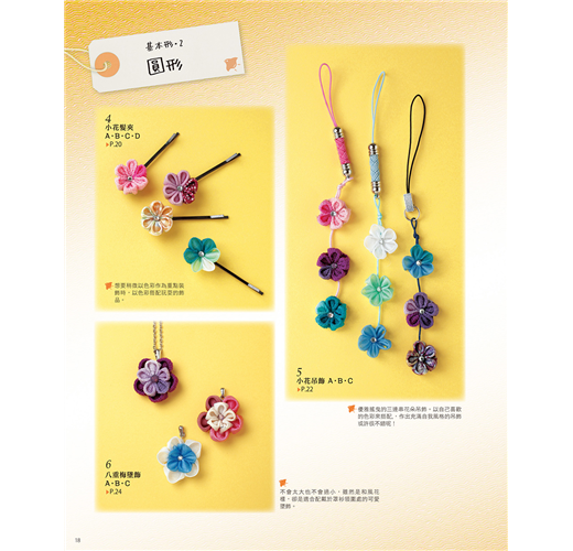 和風布花源於江戶時代,大多用來製作髮插和髮簪等飾品。現在也用來製作藝妓佩戴的髮簪與結婚式、七五三及成人式的髮簪。書中不僅介紹了基本的和風布花製作方法,更介紹了能將和風布花應用在日常生活中的簡單飾品作法。如果你曾驚嘆過和風布花的美麗,不妨也試著為自己製作一件和風布花飾品,創造出充滿自我風格的特色搭配吧!