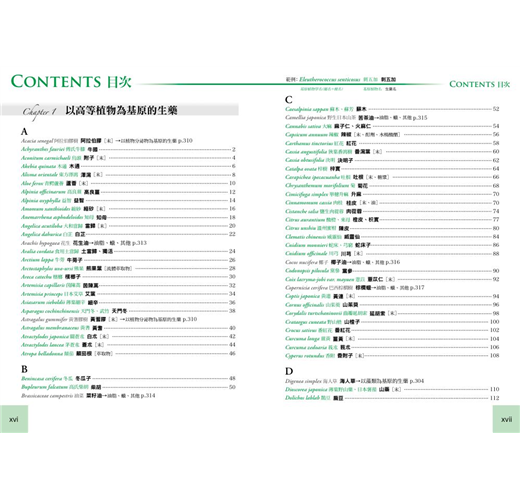 ◎以「高等植物」、「藻類」、「真菌」、「植物分泌物」為基原的生藥等,分為7大章節,介紹69大科屬,187種藥學常用植物。