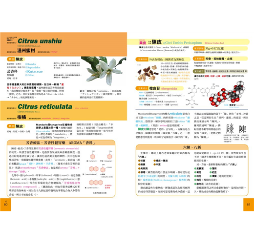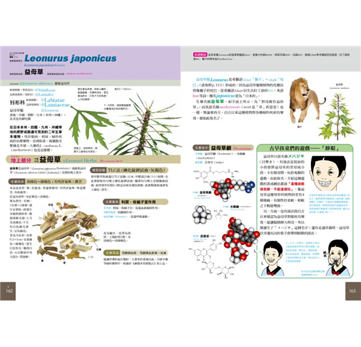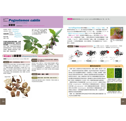 總之就是個:「藥草師找尋藥草資料無限痛苦循環的過程呀。」這本書看到時真是讓我驚豔且感動淚流了,如此資訊豐富的好書啊。特別是化學結構式的「空間填充模型」對照這個部分,使我們更能有效的理解化學分子的結構與性質,同時使用最容易被學生忽略的植物學及學名來有趣的認識藥草,還有大量的圖文對造主要成分藥性。本書內容不僅僅是中藥類,更涵蓋部分西洋藥草及芳香療法植物類。