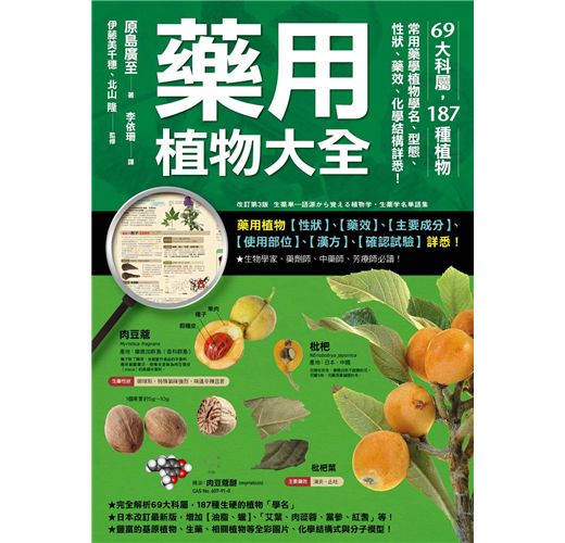 ◎《藥用植物大全》是日本生藥學界的權威著作,每一頁面的內容編寫都極其用心設計,讓人一目了然,並像說故事般的介紹藥用植物。我除了喜歡在本書在目錄上的章次仔細分類外,也很喜愛專欄目次裡面的內容,像日本、中國、韓國中的 「 蒼朮、白朮」、什麼是大和當歸與北海當歸?將相關藥用植物的內容更添豐富完整。相信能讓大家在輕鬆愉悅的心情下融會貫通,學習到有別於生硬內容的生藥學課本。這是一本不可多得的好書!