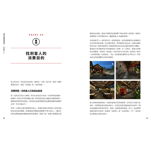 在業主與設計師的雙重角度下,以POINT形式提綱挈領,以前所未見的順序,打破傳統商業空間設計的思考順序。