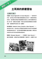 你知道土耳其重大節慶中「開齋節」又稱「糖節」嗎?男生在此節慶的第一天要上清真寺做禮拜,男女老少像農曆新年一樣,穿新衣服、拜訪親友,還要招待來訪的親友甜食。而最道地的土耳其冷飲其實是「鹹優格」和「氣泡水」。鹹優格一開始喝起來可能會覺得有點怪,但習慣後甚至還會念念不忘。其它更多有趣的土耳其文化都會在本書中的「輕鬆一下!」告訴你!