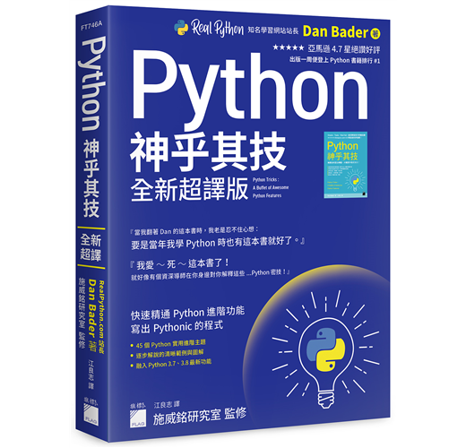 本書由施威銘研究室監修, 為原版 『Python 神乎其技』全新翻譯本, 題材與架構和前版大致相同, 但新譯本特別針對原文書進行大量補充, 包括 Python 3.7 與 3.8 最新特色, 並適當添加程式註解, 幫助讀者更容易理解內容。
