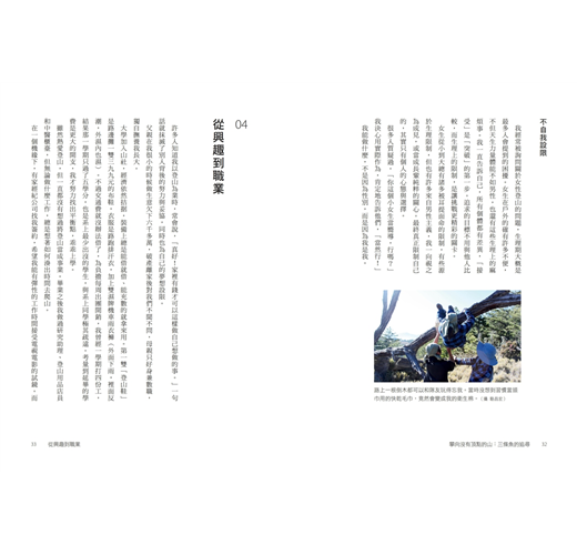 她經常說自己並非天性愛冒險,而是享受探險的樂趣。在本書中,她分享了從登山社小菜鳥到逐步實現八千米夢想的旅程。