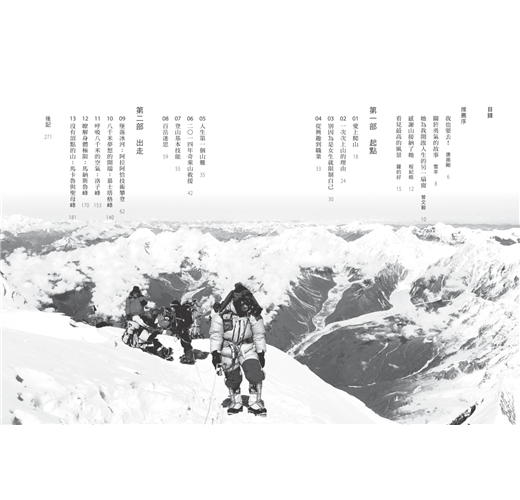 這本回憶錄中,沒有太多激昂的登頂喜悅,更多的是保護者雪巴人夏惟韌的背影、被保護者同行隊友的面龐,與在兩者間不斷切換的三條魚自己。——知名登山部落客 雪羊