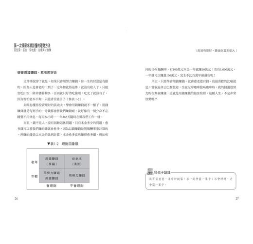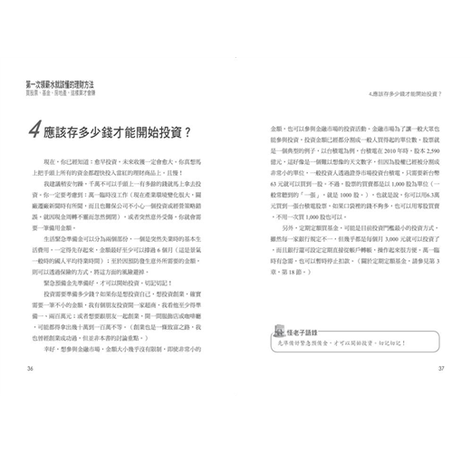我想,ㄧ般大眾理財書缺少重要的基礎投資知識,可能是考慮到ㄧ般非財經科系背景的讀者,ㄧ看到這些專業知識就會卻步,出版社可能覺得專業投資知識不討好,所以不敢冒險出版。這次很高興遇到出版社認同我的主張,算是ㄧ次大膽的嘗試。