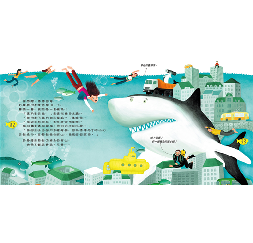 媽媽騎著飛龍大冒險、和大鯊魚在城市的街道共「游」,
