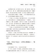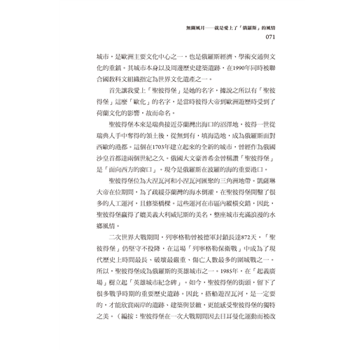 旅行讓我知曉人生總要留下一些缺憾。每個人的生命都有缺口,旅行途中不見得遇到的都是好事、美景,但每份經歷卻都深刻入心。在日本北海道「阿寒湖」冰上垂釣,卻毫無所獲;連著兩天因能見度,無法搭纜車上南非開普敦的「桌山」;在北京「紫禁城」的硃砂高牆沒能等到第一場初雪;前一晚在芬蘭還太陽高照,隔天拉車到挪威北角卻風雨交加見不到期待中的「日不落」;參觀四川熊貓基地,想花6,500元台幣和大、小貓熊拍照,卻因節儉成性的雙親阻擋只能作罷……我把這些遺憾都刻印在了心版,留給了屬於我的地久天長……。