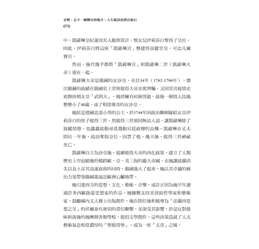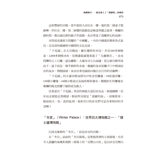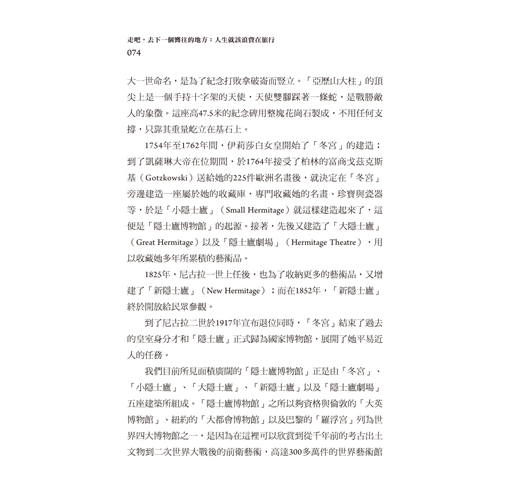 從1990年學生時代迄今,我的旅行年齡已30年餘。從學生時代窮遊歐洲,喝不起一杯咖啡,只能在巴黎的「花神咖啡館」(Café de Flore)和羅馬的「古希臘咖啡館」(Antico Café Greco)門口拍照,到如今已可在米其林餐廳享受用餐的過程;以前背著行囊窩在車站、機場也能過夜,到現今已有能力可以在五星級酒店享受一夜好眠。隨著歲月流轉,每一次探索世界的旅行心境的轉變,都展現了洞見世事的不同角度和視野。這正呼應了張潮在《幽夢影》所言:「少年讀書,如隙中窺月;中年讀書,如庭中望月;老年讀書,如臺上玩月。皆以閱歷之淺深,為所得之淺深耳。」不同的人生階段出走,閱歷越深,在旅行中的領悟就越多,也越能引發不同的感悟,進入不同的境界。