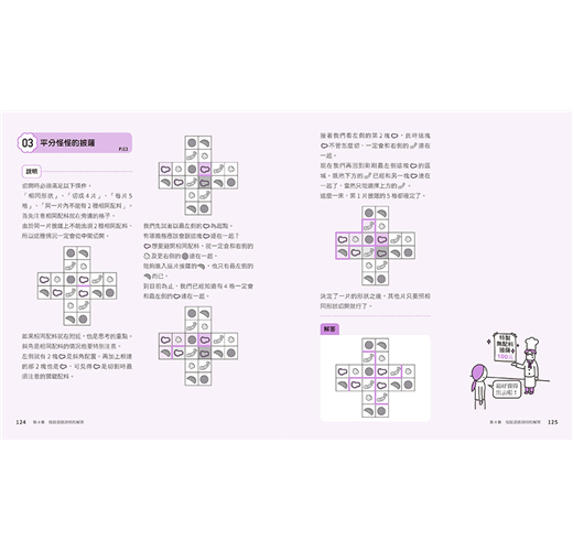 書末還附有解答與解題的思考過程說明,以及更多種解法的分析,不論是秒解難題而獲得成就感,或是解題卡關後參閱提示和解說而恍然大悟,都能輕鬆無負擔的享受腦力全開的暢快,並且把思考化為可見且脈絡清晰的過程。
