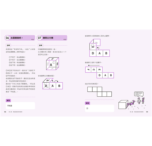 特色3. 看得見的思考過程:書末附有解答,並詳細說明解題的思考過程,以及不同方式的解法,讓孩子腦力全開,邏輯思維能力大大升級!