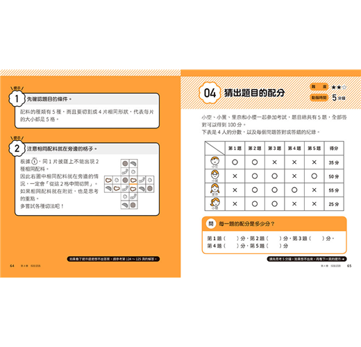 特色2. 超強邏輯思維訓練:每題只有5分鐘解題時間,題目後皆有解題的邏輯思維關鍵提示,適時幫助孩子打通思考盲點,享受動腦思索後豁然開朗的成就感!