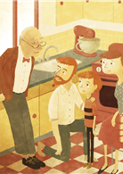 就在這時,爸爸和爺爺剛好走進廚房。媽媽告訴他們說:「萊利今天過得很不開心,那些男孩玩到最後才選他。」