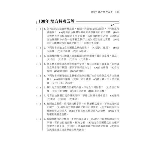◎本書依據考選部公布之命題大綱及地方自治最新修訂法規編著