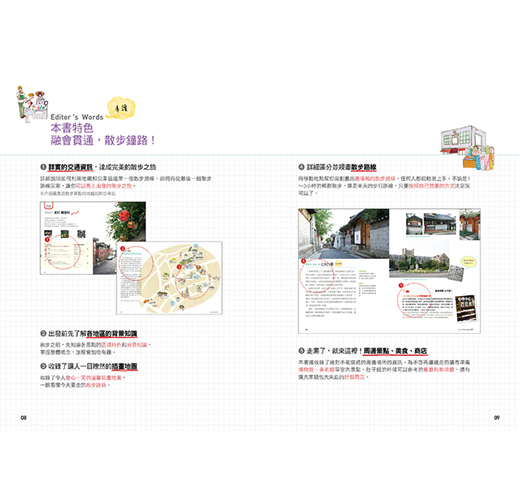 收錄了令人會心一笑的溫馨插畫地圖,一眼看懂今天要走的散步路線。。