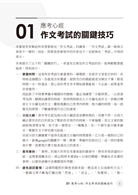 本章提示了以下的「關鍵技巧」,希望有志參加作文考試的你,能夠輕鬆掌握秘訣,得到高分。
